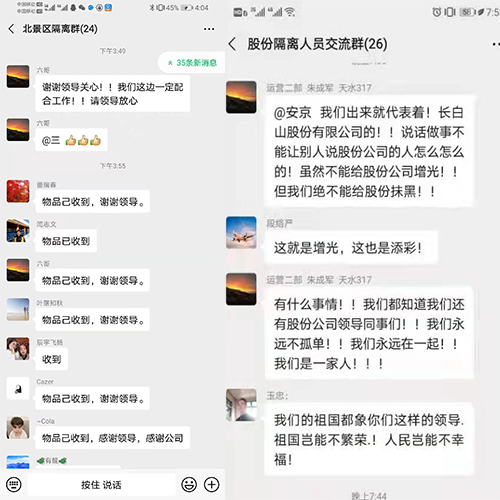 1月20日,景區運營黨總支、北景區運營黨支部帶領支部委員組成的慰問小組,專程來到長白山天水酒店疫情防控集中隔離點進行慰問,并為隔離人員送去水果、牛奶、八寶粥等生活物資、慰問品。同時持續做到關心不斷、慰問不停,建立隔離人員慰問群,每日關心隔離人員狀態,每日上報隔離人員信息。
