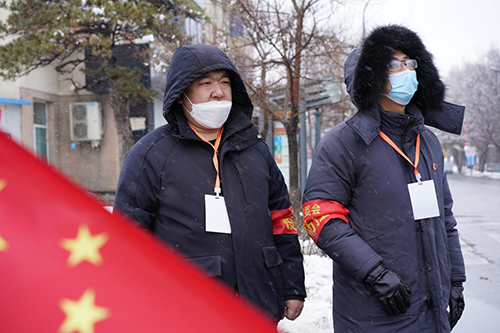 一場春雪,給這個被疫情所困擾的大地帶來了活力,一個個飽含“必贏”信心的字眼在雪中抒寫,冒雪堅守抗“疫”一線的他們,依然是鏡頭下的主角。美人松下,小區(qū)隘口,身戴紅色袖標的志愿者們,在雪的映襯下格外挺拔。